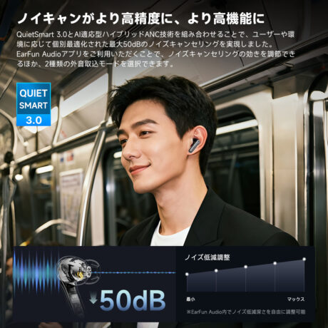 ・EarFun独自技術「QuietSmart™ 3.0」により最大50dBのノイズを低減