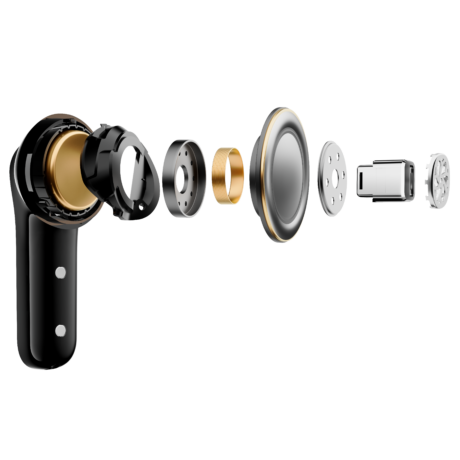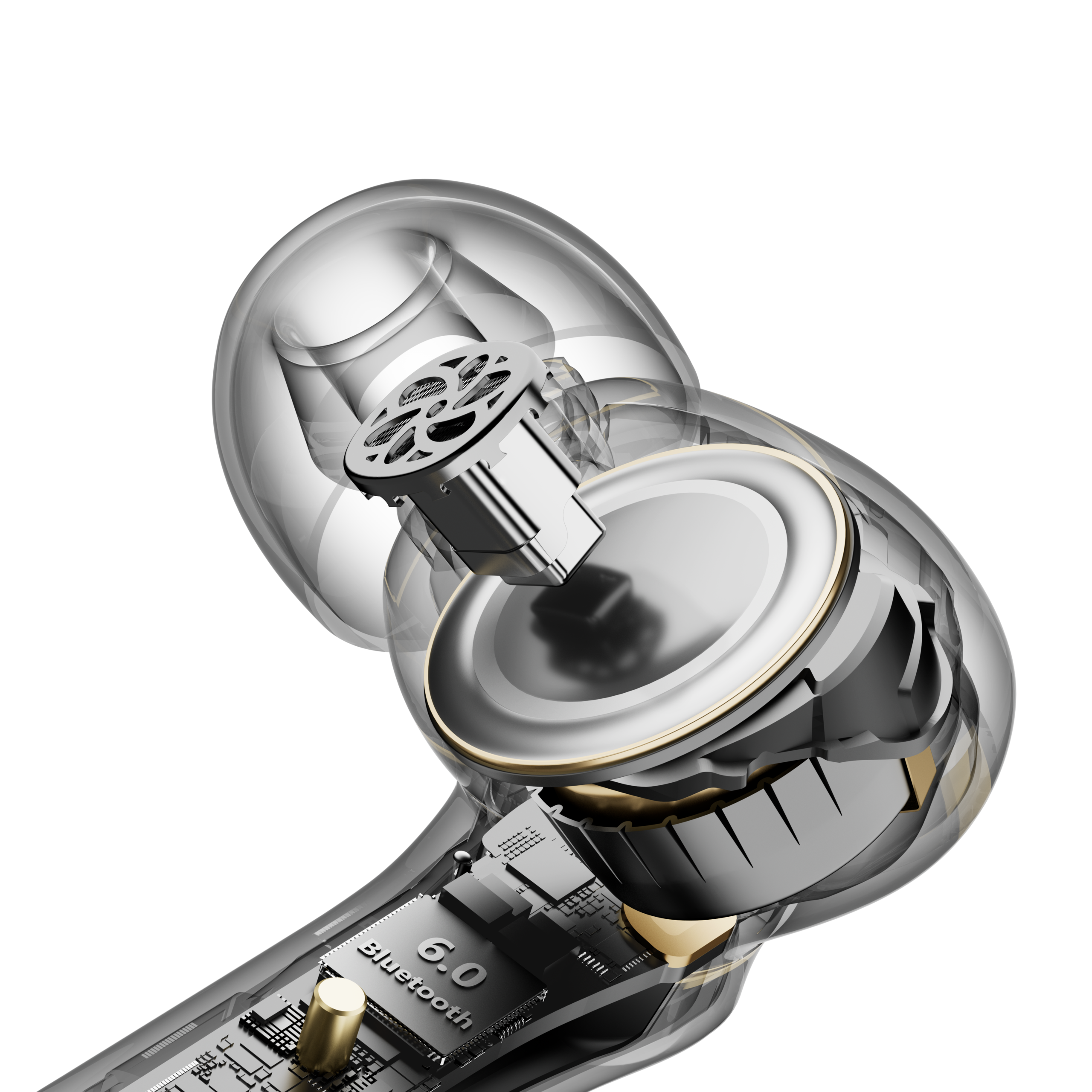10mmダイナミックドライバーにはEarFun独自の低音強化技術「BassSurge」を搭載し、深みのある中低音を力強く再現。一方、自社開発の超小型バランスド・アーマチュア(BA)ドライバーは、澄み渡るような高域をクリアかつ鮮明に描き出します。さらに、自社開発のハイブリッドドライバー専用チューニングと新たな分頻技術により、高音と低音のつながりが驚くほど滑らかに。音の境目を感じさせない自然な一体感で、原音に忠実なサウンドを実現します。独自のオフアクシス配置音響構造(Nano Side-Fitted Acoustic Architecture、NSAA)によって、限られた筐体内でもダイナミックドライバーとBAドライバーを最適な位置に精密配置。ハイブリッド構成のポテンシャルを最大限に引き出し、極限の音質表現と快適な装着感を両立しました。