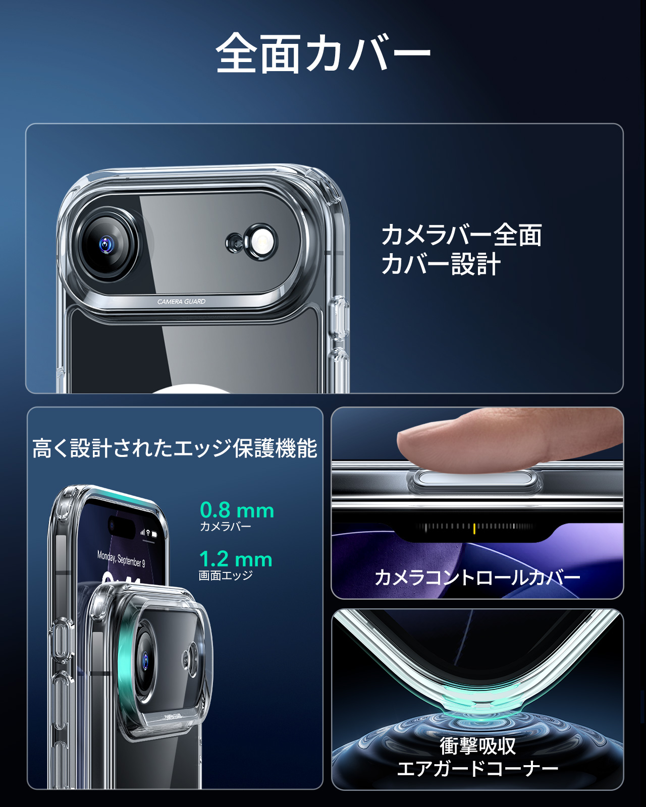 革新的なカメラコントロールボタンを専用カバーで守りながら、指先に伝わるプロ級の操作感をそのまま体感できます。スライド時の滑らかな動きから押圧時の確かな反発感まで、本体と遜色ない精密なタッチレスポンスを実現します。ボタン周辺の隙間を完全に封鎖する設計で、ほこり侵入を徹底シャットアウトします。精密センサーを埃のストレスから守り、シャッターチャンスを逃さない快適操作を長く支えます。