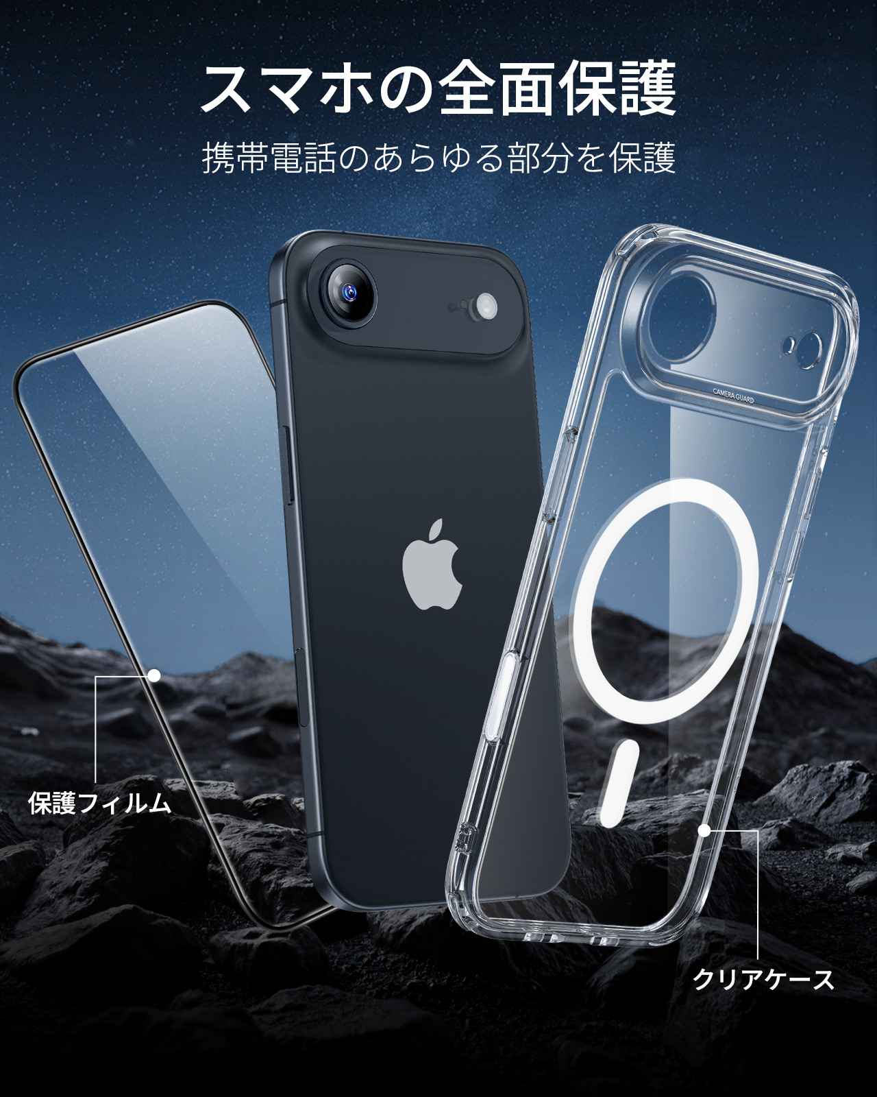 米軍規格MIL-STD-810Hの落下試験に合格したエアガードコーナー(認証番号:GZMR231203686802)を採用します。コンクリートへの高さ3.3メートル落下テストにも耐える設計で、駅のホームでの使用や登山中など、アクティブなシーンでも安心できます。うっかり落とした時も、大切なiPhoneを確実にプロテクトします