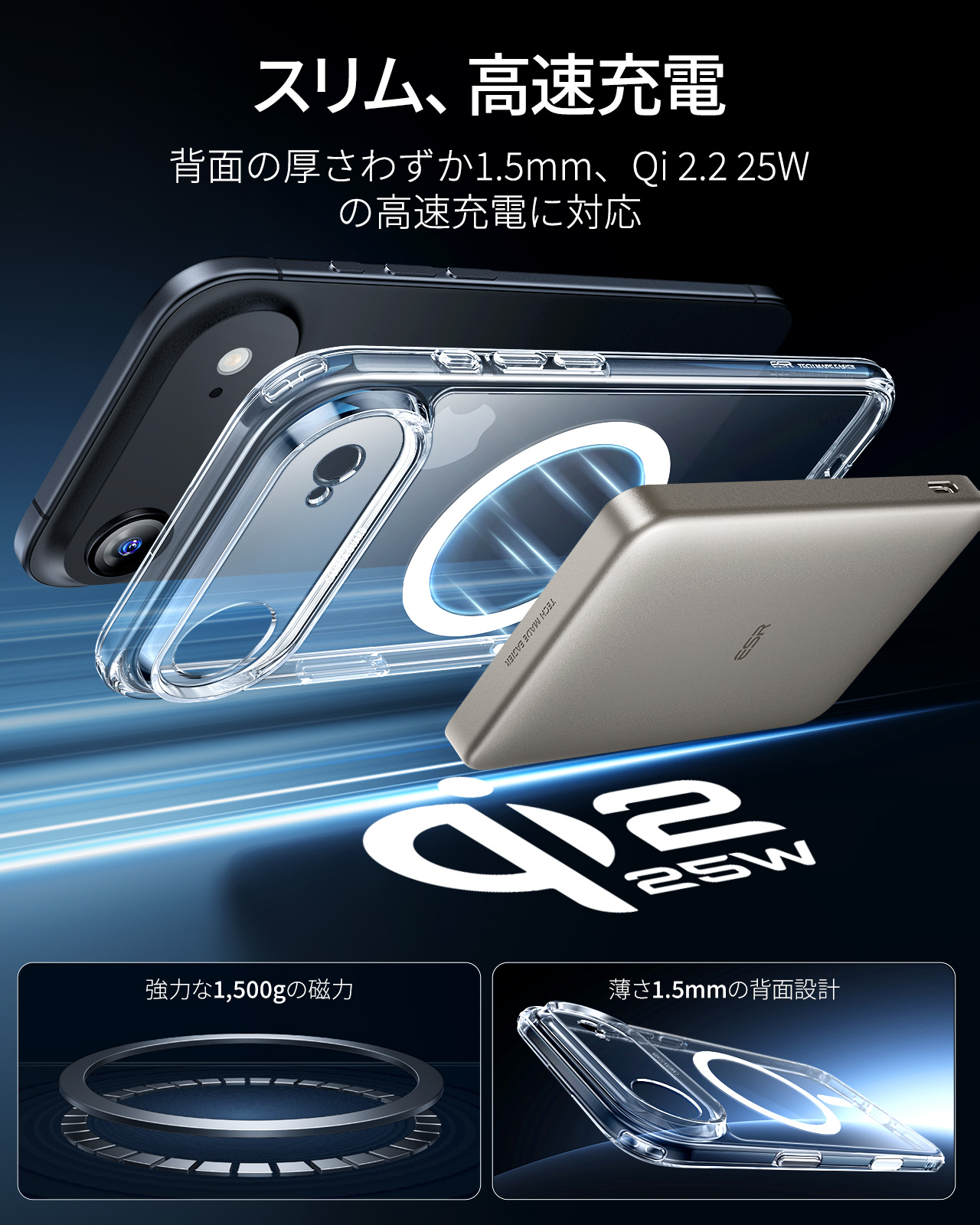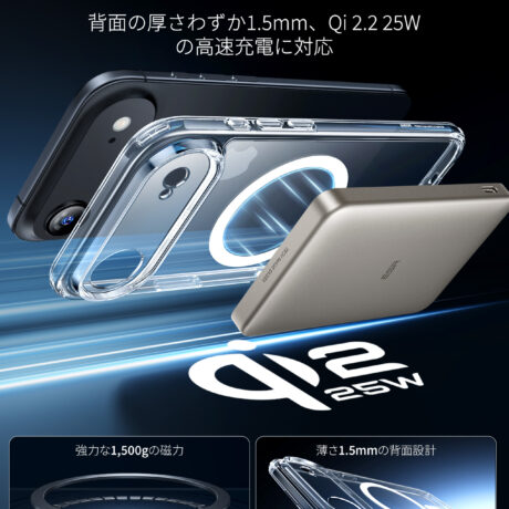 業界トップクラスの強力磁力(1,500gの保持力)を内蔵した iPhoneケースです!MagSafeワイヤレス充電器やアクセサリーが瞬時に「ピタッ」と吸着するため、満員電車や急いでいる時でも位置調整の手間が不要です。充電中のずれ落ちやアクセサリーの外れが心配ない設計で、移動中やアウトドアでの利便性が格段に向上します