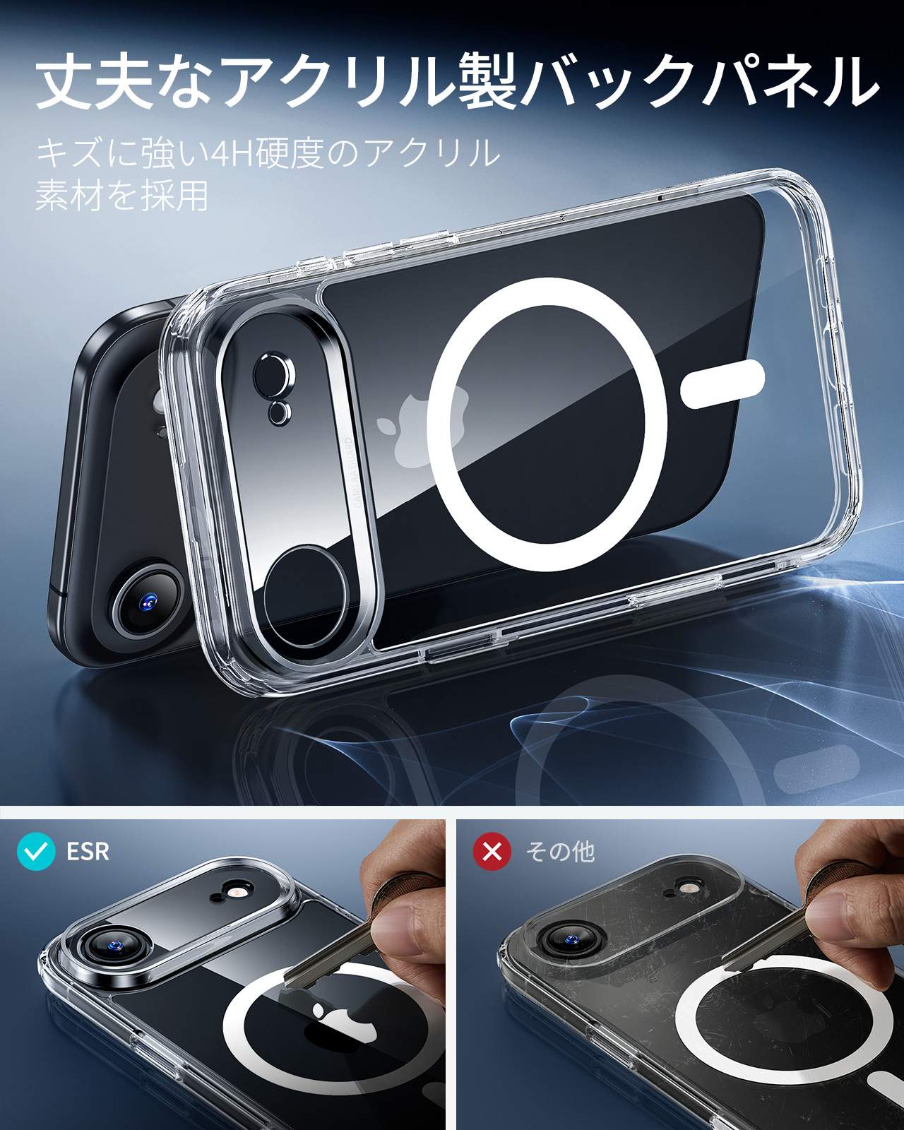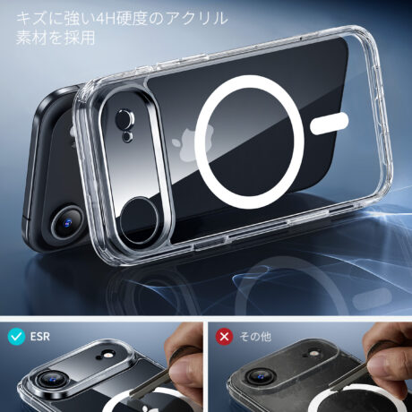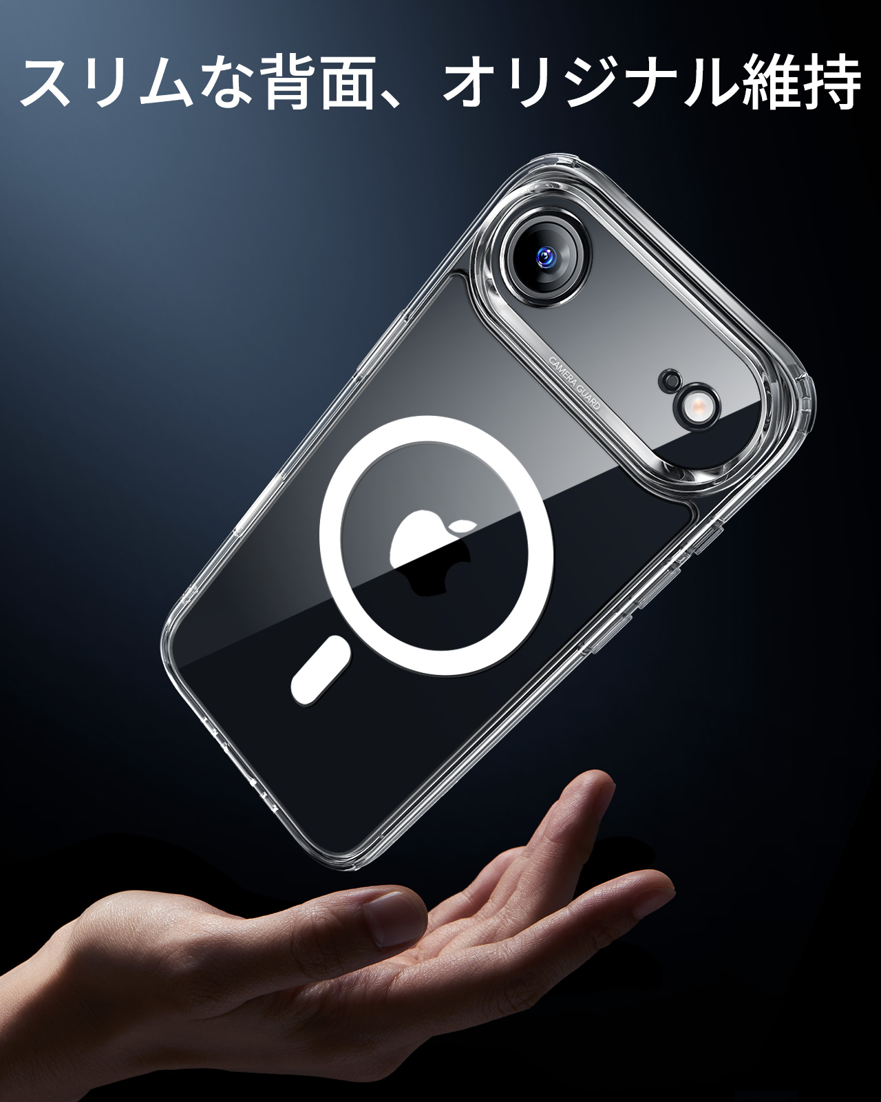 高純度アクリル素材が、iPhoneの洗練されたデザインラインとカラーを完璧に映し出すクリアさを実現します。さらに嬉しい「透明」の魅力として、ケース背面と本体の間にオリジナルの写真やメモ、お気に入りのシールを挟めるデザインに、思い出やこだわりのアイテムを透かして見せれば、世界でひとつだけのマイデザインに早変わります! 季節や気分で中身を入れ替えるだけで、手軽にオリジナリティを表現できます。軽量設計としっとりなめらかな手触りが、カスタマイズの楽しみと日常の使いやすさを両立させます