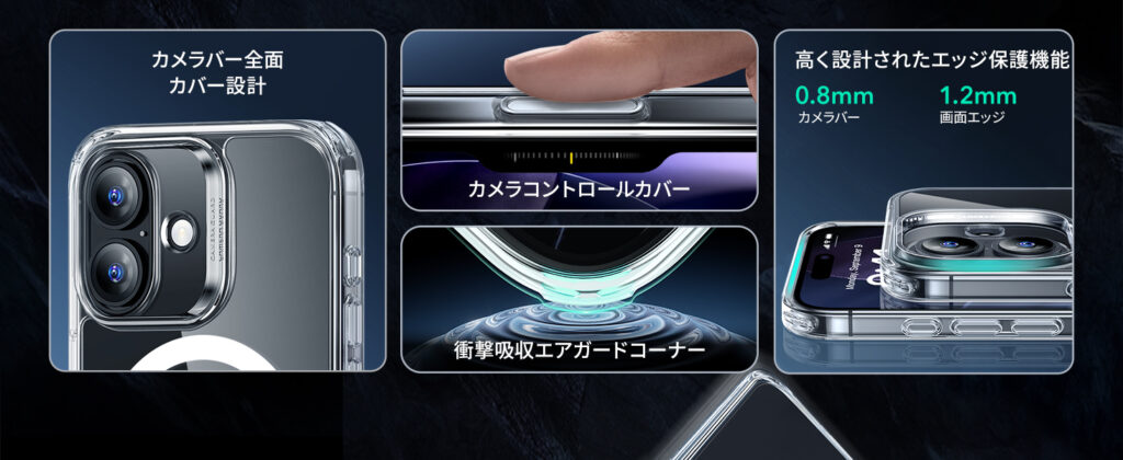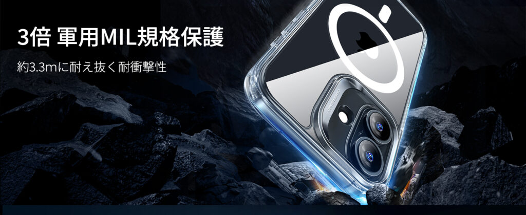 米軍規格MIL-STD-810Hの落下試験に合格したエアガードコーナー(認証番号:GZMR231203686802)を採用します。コンクリートへの高さ3.3メートル落下テストにも耐える設計で、駅のホームでの使用や登山中など、アクティブなシーンでも安心できます。うっかり落とした時も、大切なiPhoneを確実にプロテクトします