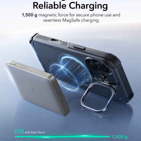 1,500gの保持力を持つ強力な内蔵マグネットが、より速く、より簡単な瞬間吸着ワイヤレス充電と、あらゆるMagSafeアクセサリーへの安全な磁気吸着固定を可能にします。
