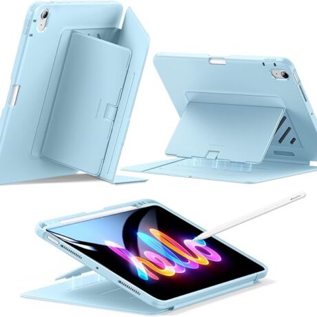 2つのスタンドモードに対応しており、45°~60°はビデオ鑑賞、作業、FaceTimingなどに最適なビューイングモードへと、25°に調節した場合は執筆、絵画、その他のクリエイティブな作業に最適なライティングモードへと用途に合わせて角度調節が行えます
