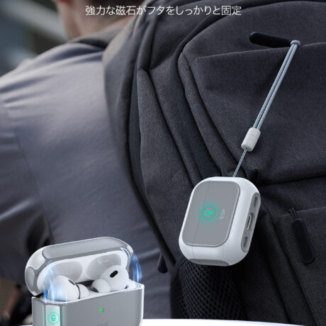 ケース背面の強力なマグネットが位置合わせを行い、MagSafe充電器を確実に磁気吸着ロックします。簡単にAirPodsを瞬間吸着のワイヤレス充電できます。