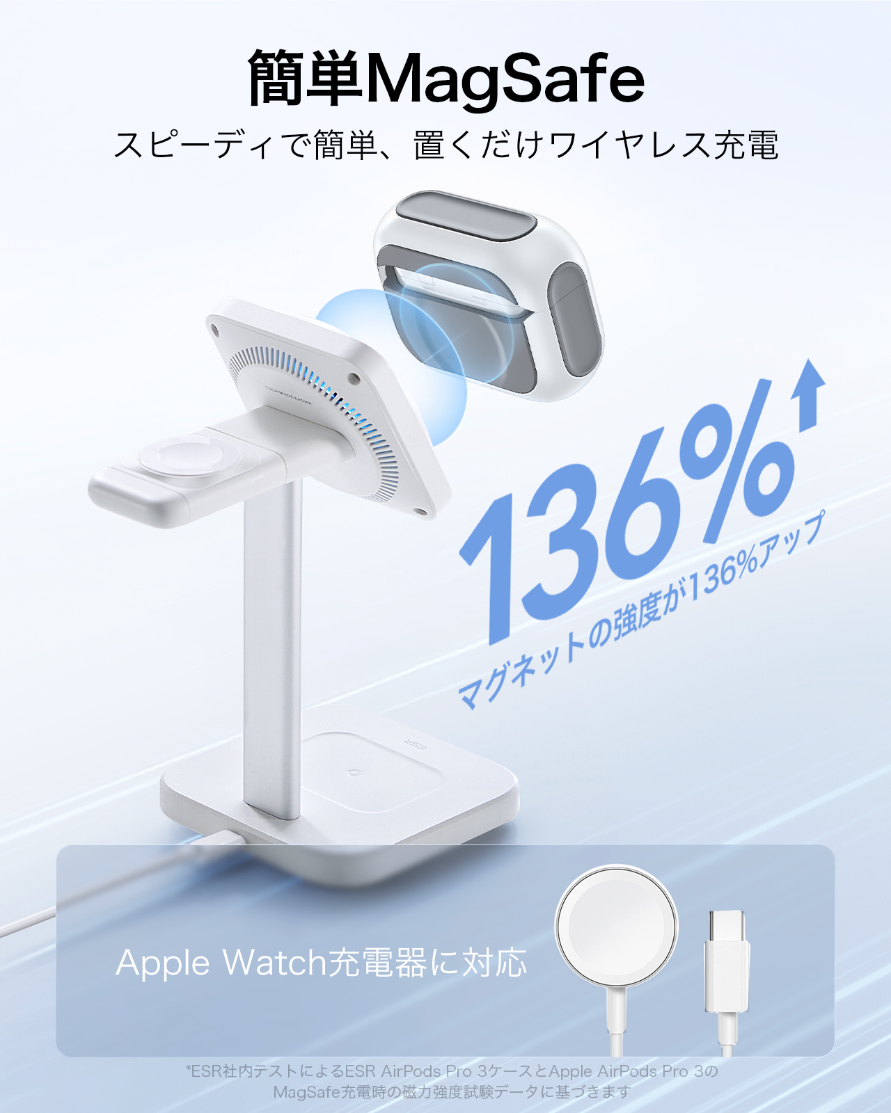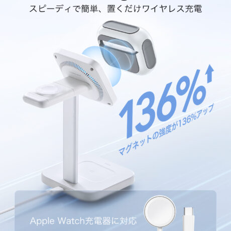 簡単にAirPodsを瞬間吸着のワイヤレス充電できます。