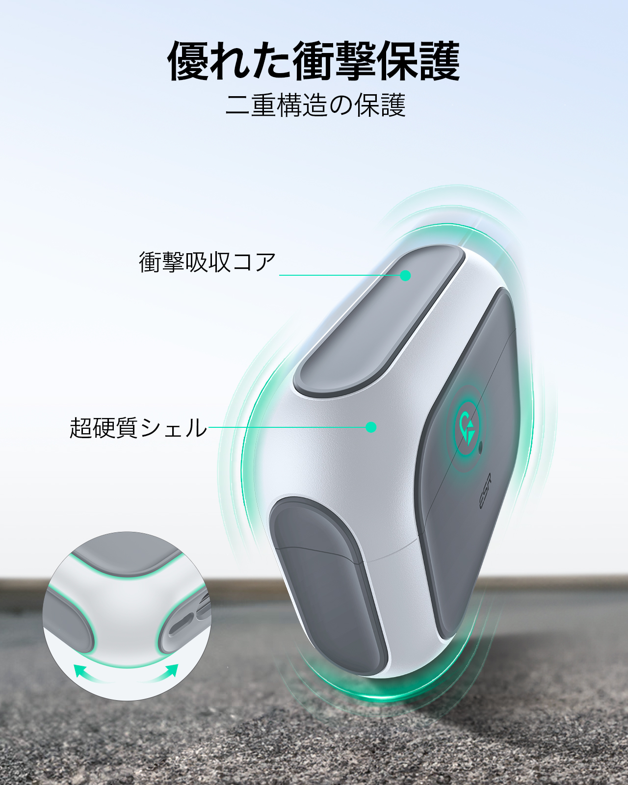 超硬質シェルと柔軟な衝撃吸収コアにより、二重防御を実現し、充電ケースをしっかりと保護し、きれいなまま保ちます。