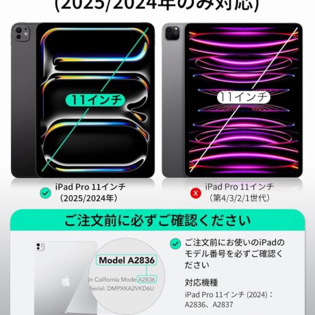 iPad Pro 11インチM5(2025)、 M4(2024、第5世代)専用です。モデル:A2836、A2837。他のiPadモデルと互換性がありません。