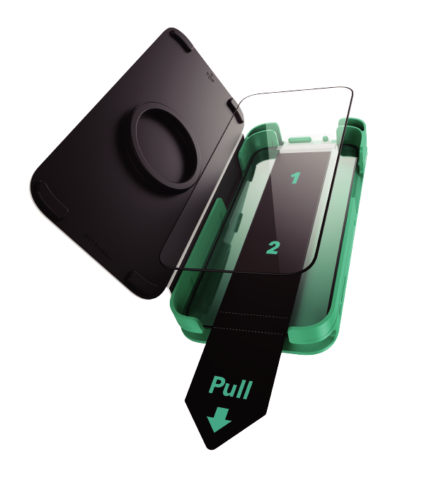 付属UltraFitトレイが正確な位置合わせを可能にし、ホコリ除去、静電吸着技術により、気泡・ホコリ混入のない簡単な取り付けがたったの数秒で行えます。
