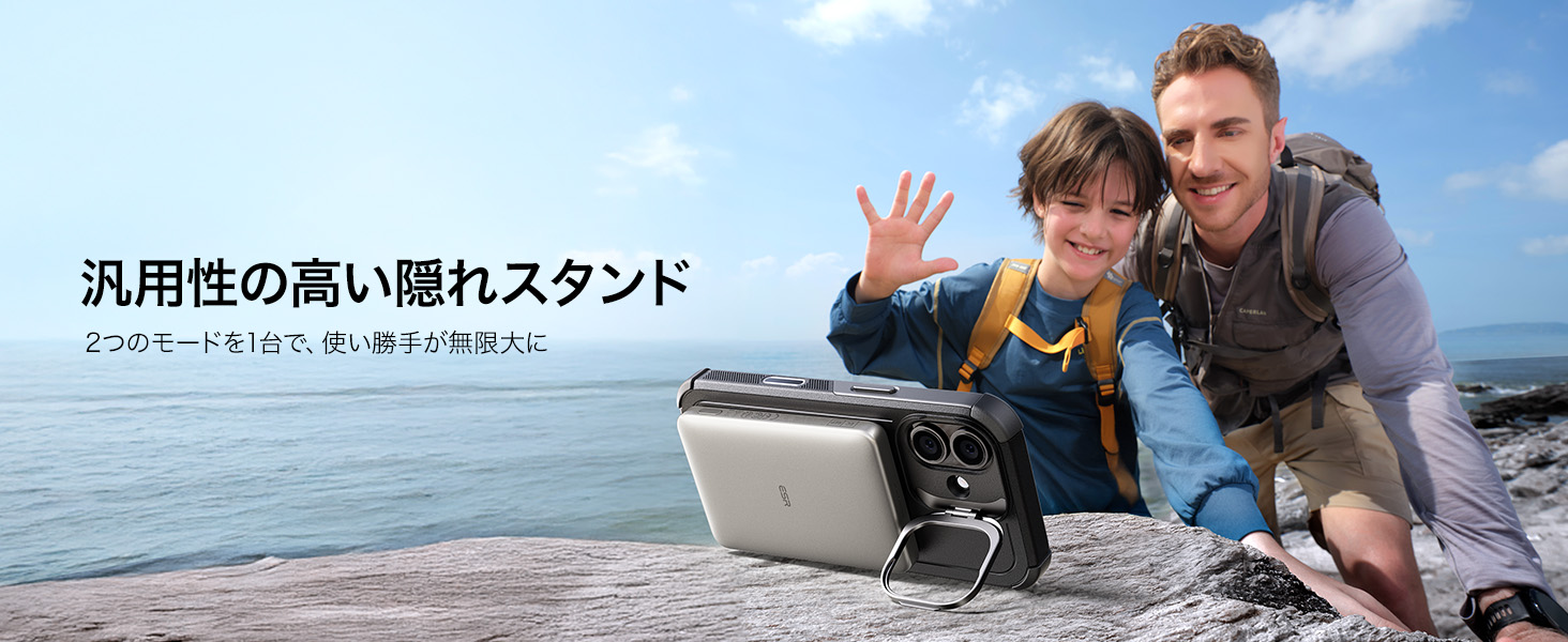 「スタンドケース、便利だけど邪魔じゃない?」いいえ、このスタンドは隠蔽式です!必要な時だけに出し、縦位置・横位置を自由自在に調整可能で、YouTube視聴はもちろん、TikTokやInstagramの縦長動画のライブ配信にも最適です。この独創的なデザインは、フレンチデザインアワード2024ゴールド賞を受賞しました!スタンドを使いながら同時にMagSafe充電もでき、革命的な便利さです