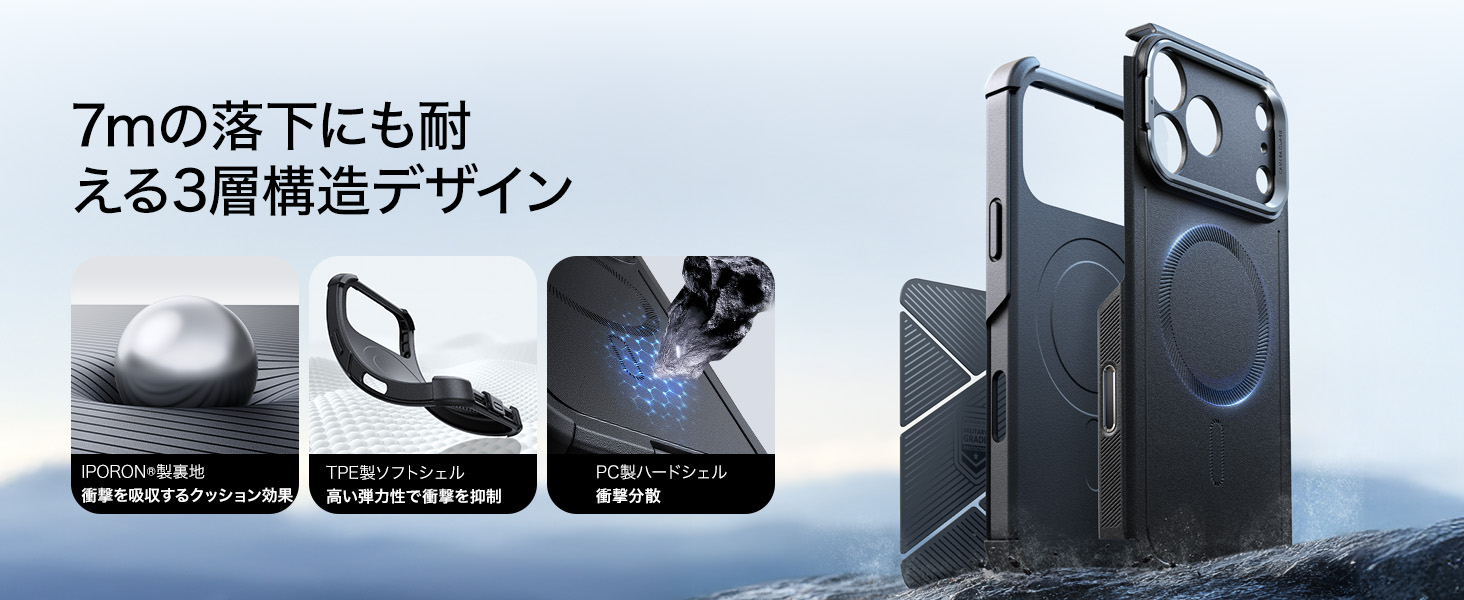 【軍用級保護!落下衝撃を徹底吸収】